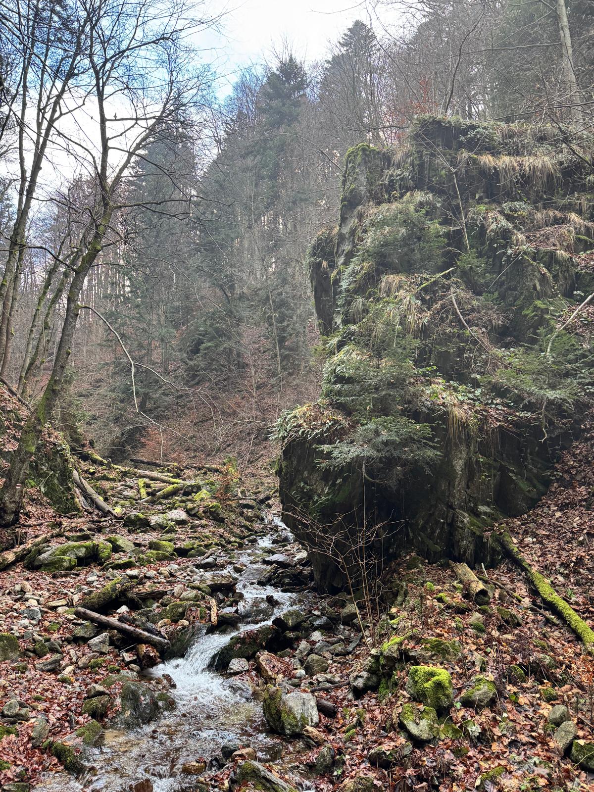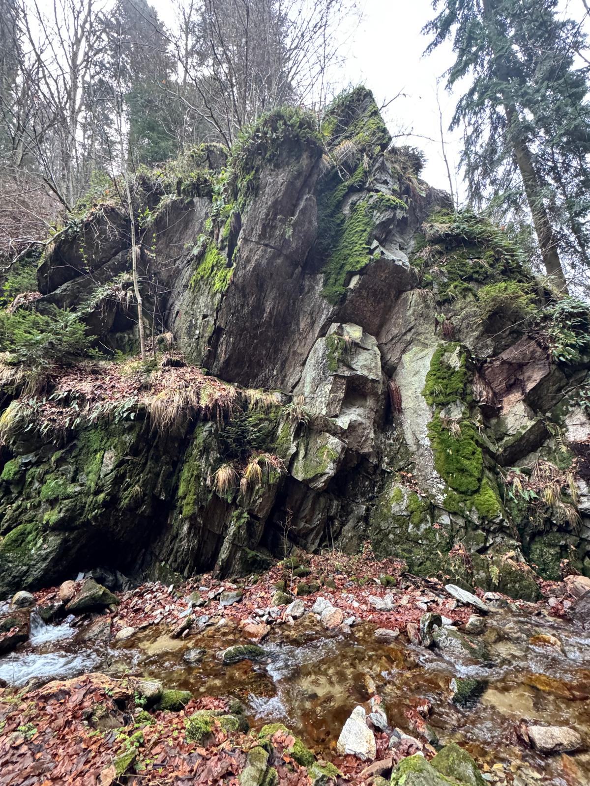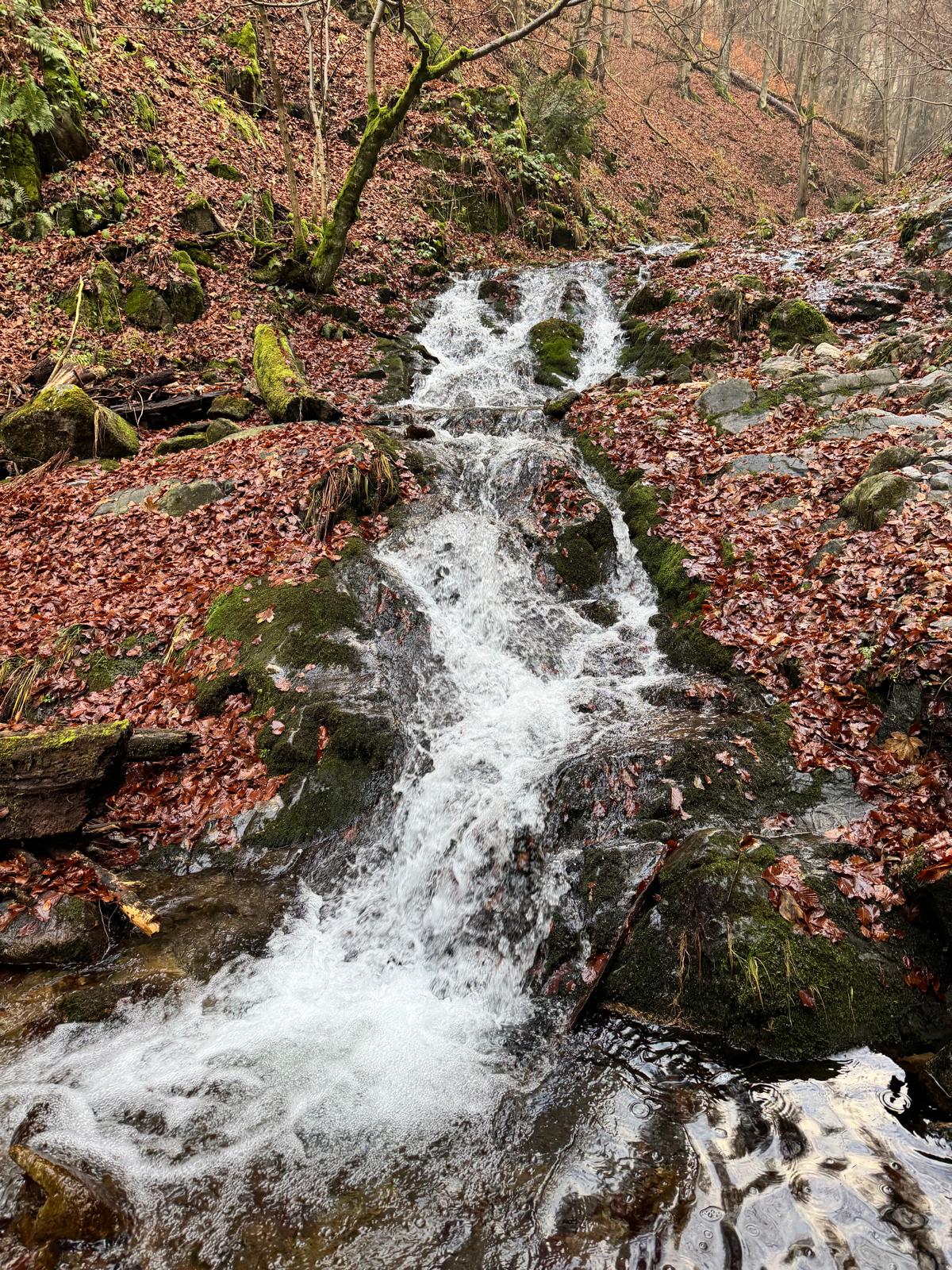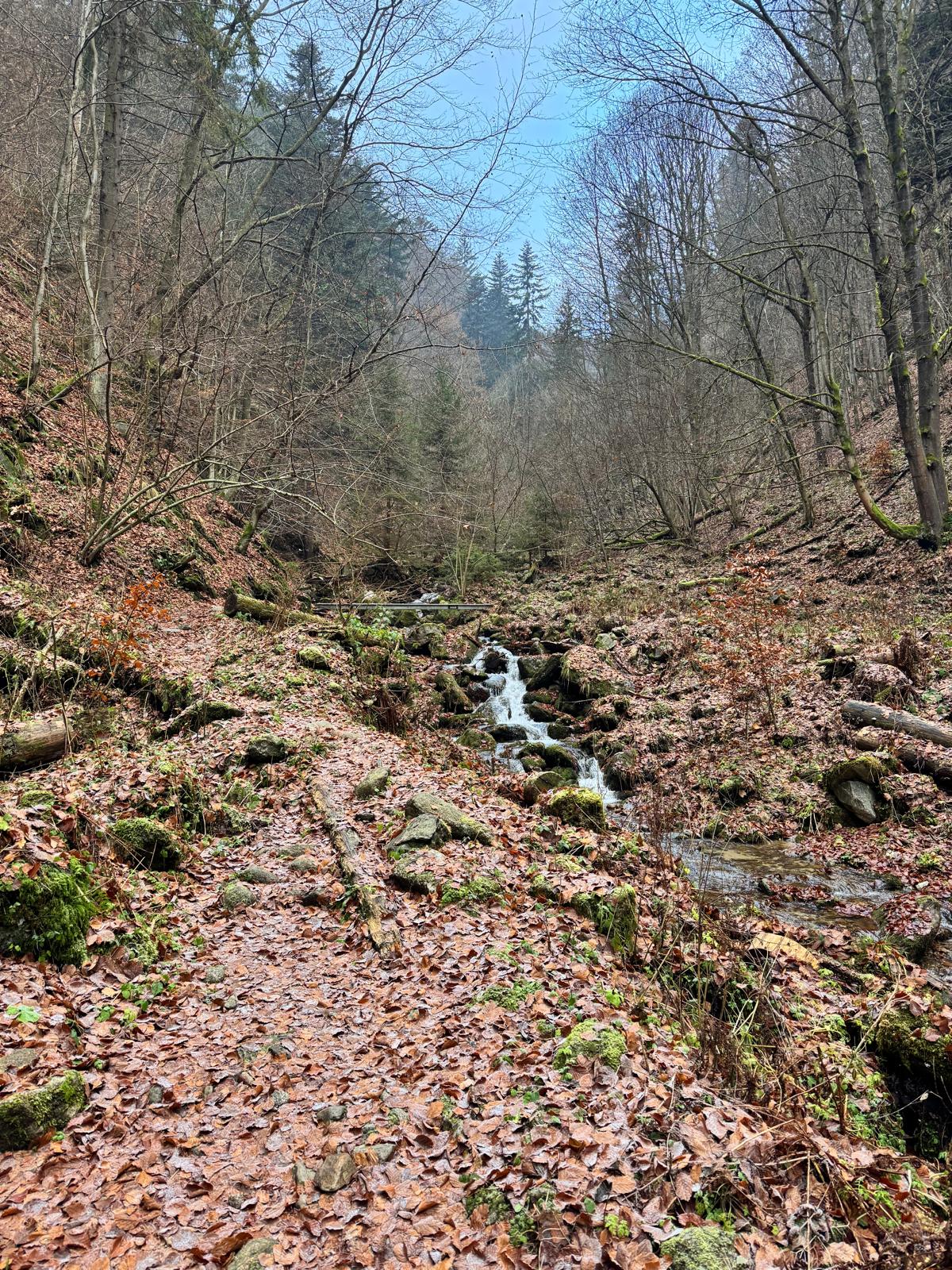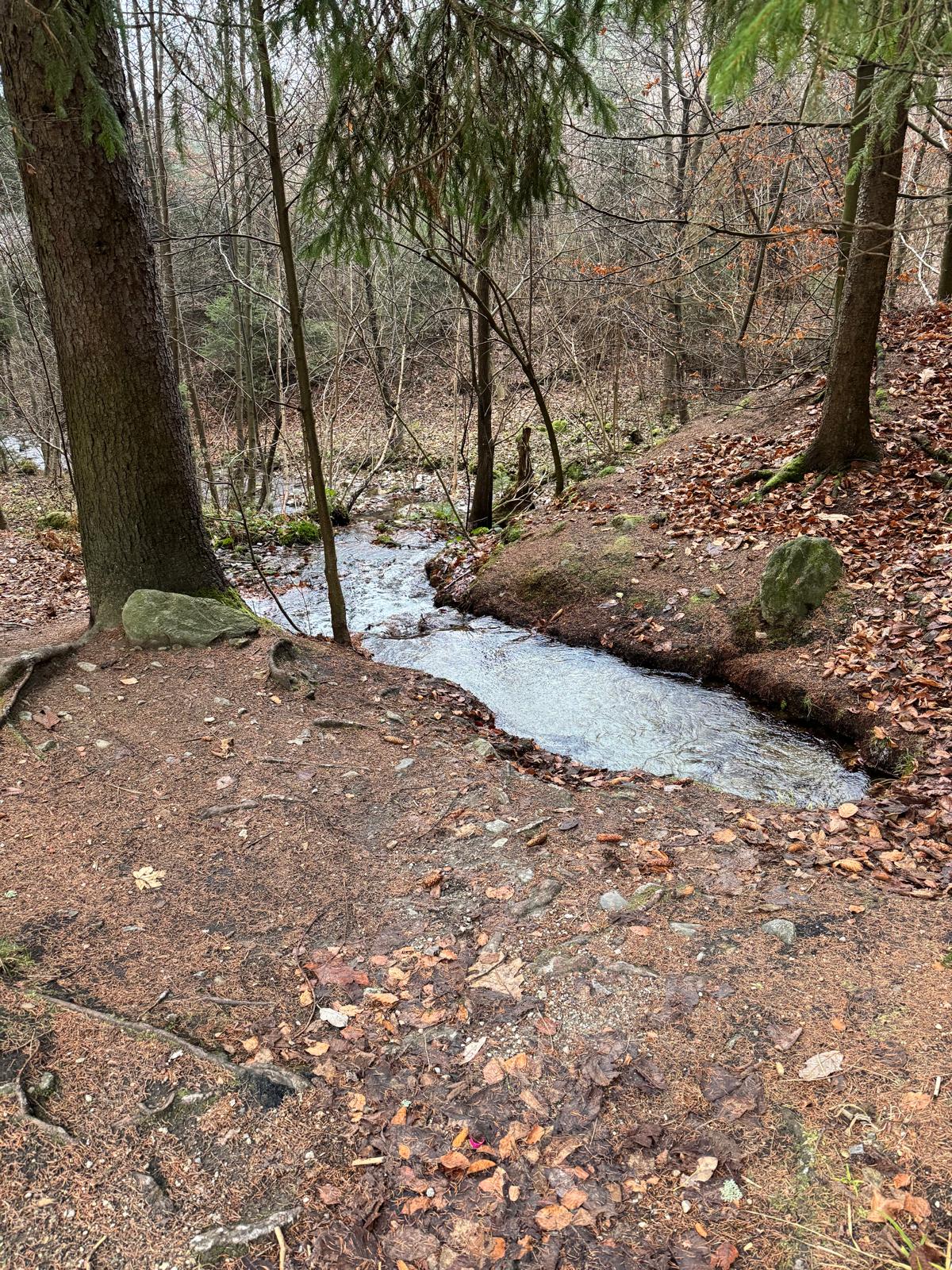 Pod vodopádmi sa môžete rozhodnúť, či pokračujete ďalej úsekom C alebo B (neskôr sa obidve cesty opäť spájajú). Ja sa rozhodnem pre B, „céčko“ sa mi zdá až moc zasnežené. Ešte 200 metrov dlhý úsek a stojím na malom mostíku nad potokom. Tu už môžete výstroj dať dole. Po turistickom chodníku došľapete ku krížu, kde si môžete oddýchnuť (je tu posedenie) a aj výstupová kniha.