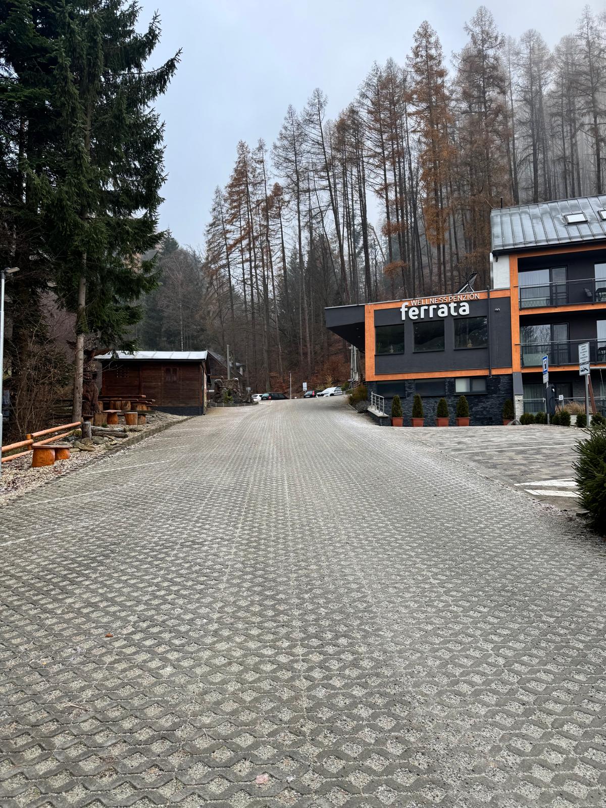 Vyrážam z autobusovej zastávky Martin – Stráne a po 800 metroch po asfaltke prídem k Welness penziónu Ferrata. Až tu človek vchádza do prírody.