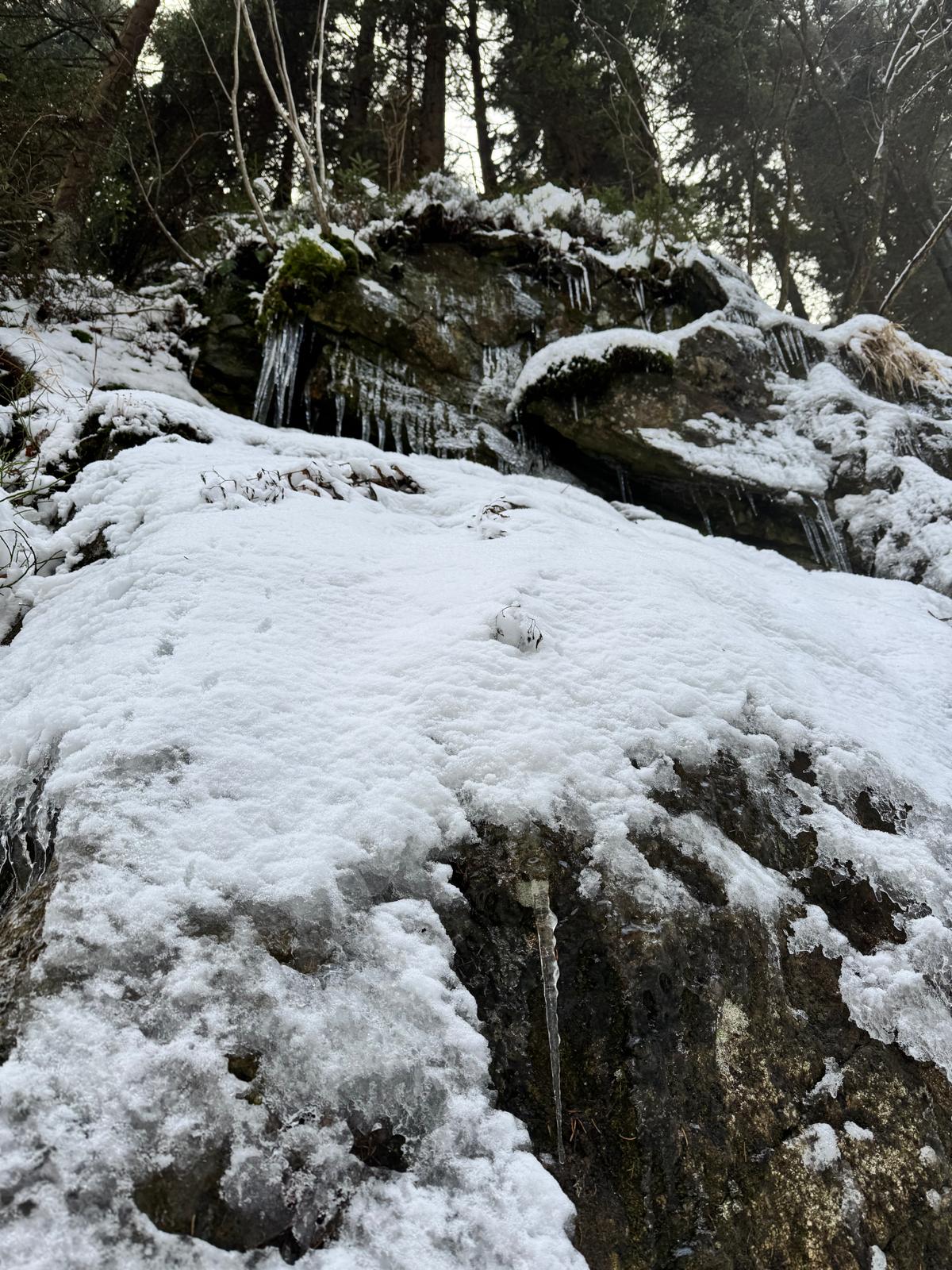 Po prelezení približne 600 metrového úseku sa dostanem pod vodopády a som vo výške 1 130 metrov. Tesne pred týmto úsekom sa mi stala malá nehoda, prepadol sa pod mnou sneh a ja som ostal visieť na rukách na oceľovom lane. Napokon sa nič vážne nestalo, bolo z toho len pár modrín na nohách.