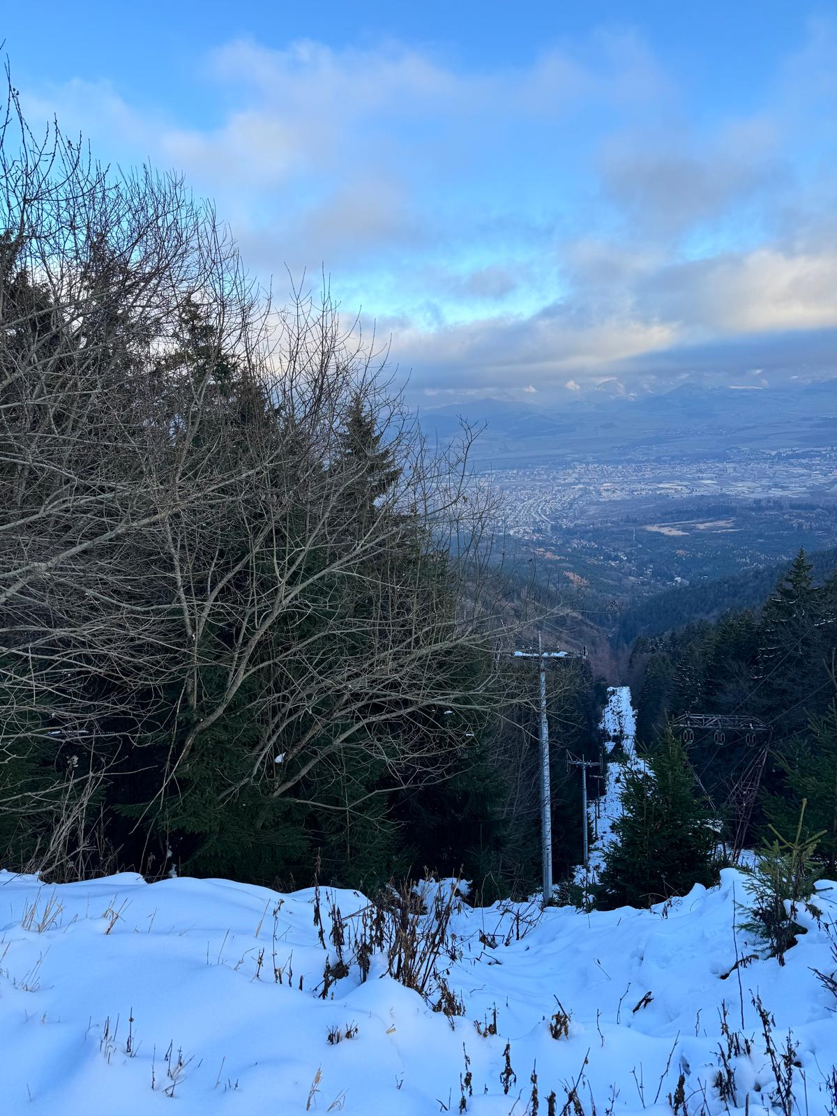 Cesta dole vedie po širokej ceste s možnosťou si jednotlivé úseky skrátiť. Je to skoro 7 kilometrov, kým sa dostanem na ulicu Hrdinov SNP, ktorou zbehnem ku parkovisku.